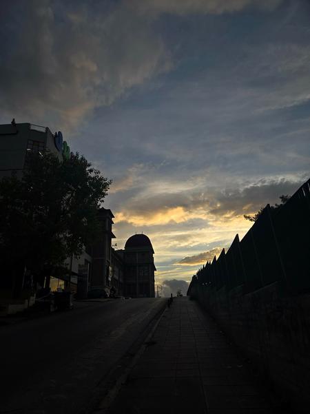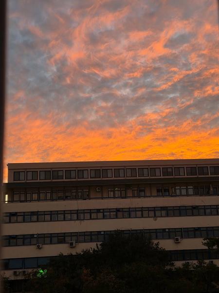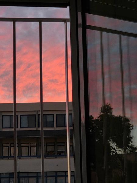 Urban sunset reflections.